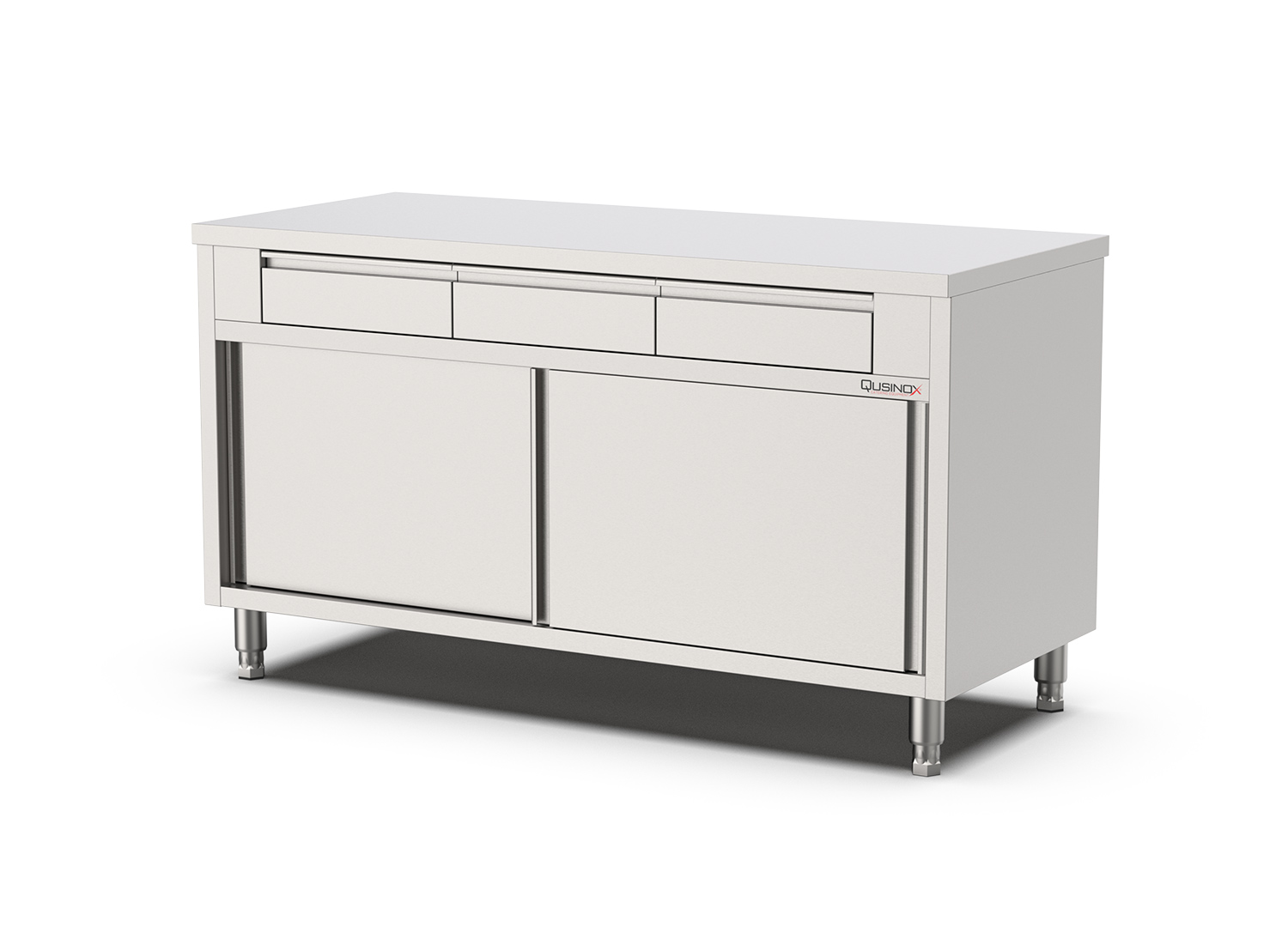 Prekės informacija "Nerūdijančio plieno stalas su durelėm ir 3-iem stalčiais įrankiams"