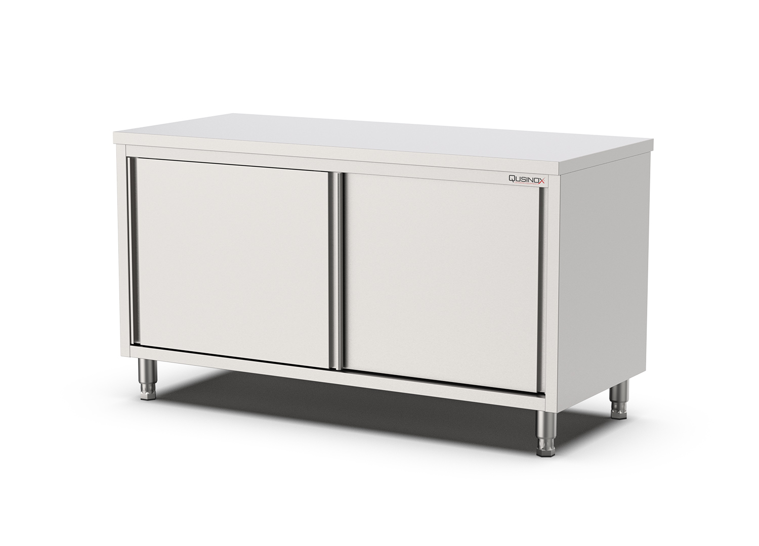Prekės informacija "Nerūdijančio plieno stalas su stumdomom durelėm."